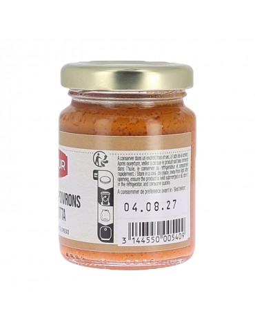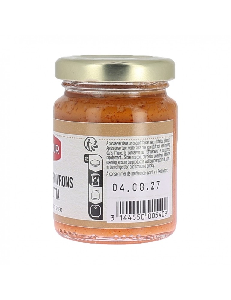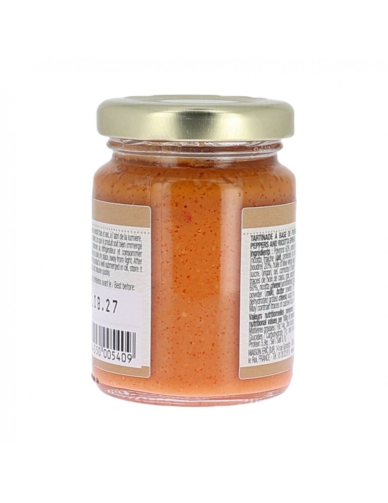 0.09 KGCette préparation à base de poivrons et de ricotta est délicieuse sur des croûtons de pain natures ou toastés lors de l'apéritif. Elle peut également entrer dans la composition de vos plats et donner une savoureuse touche méditerranéenne.