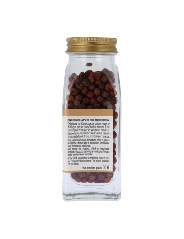 Originaire du Cambodge, ce poivre rouge aux notes fruitées puissantes est idéal sur les viandes et les poissons comme sur les desserts à base de fruits (salades de fruits, compotes, ananas...).