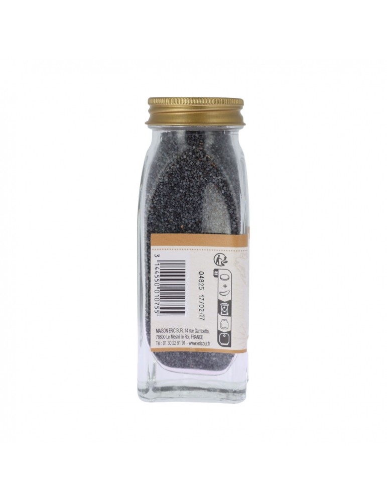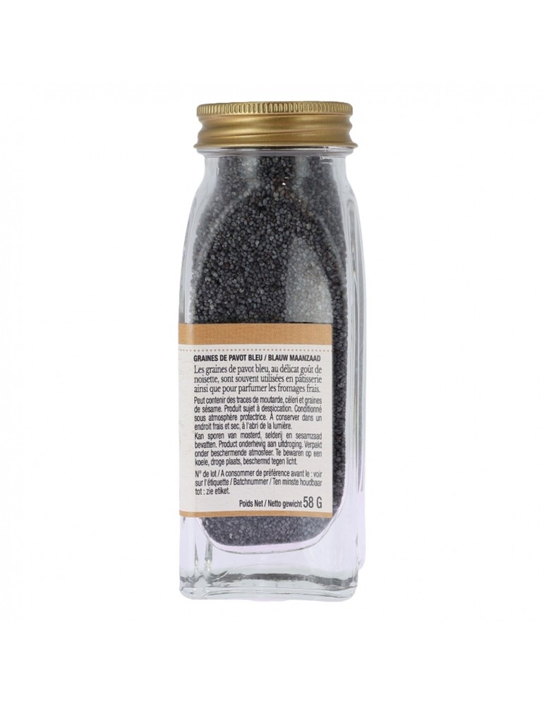 Graines de pavot bleu. Peut contenir des traces de MOUTARDE, CÉLERI et GRAINES DE SÉSAME.