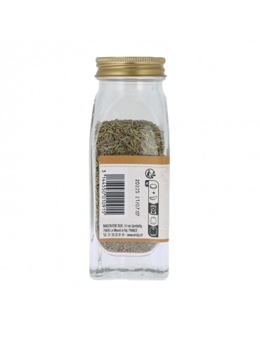0.018 KGLe romarin est une herbe condimentaire que l'on retrouve beaucoup dans la cuisine méditerranéenne, avec un parfum camphré et un goût piquant. Il s'harmonise très bien avec le thym et l'ail. Il faut le doser avec parcimonie, son parfum aromatique étant très puissant, il peut masquer la saveur des autres aliments. Son arôme se développe sous l'effet de la chaleur, à utiliser dès le début de la cuisson. Il assaisonnera l'agneau, le lapin, le gibier, le porc, la volaille, les grillades, les ragoûts, les civets, les soupes, les sauces, les légumes secs et en infusion il parfumera les desserts comme les flans, les crèmes, les confitures.
