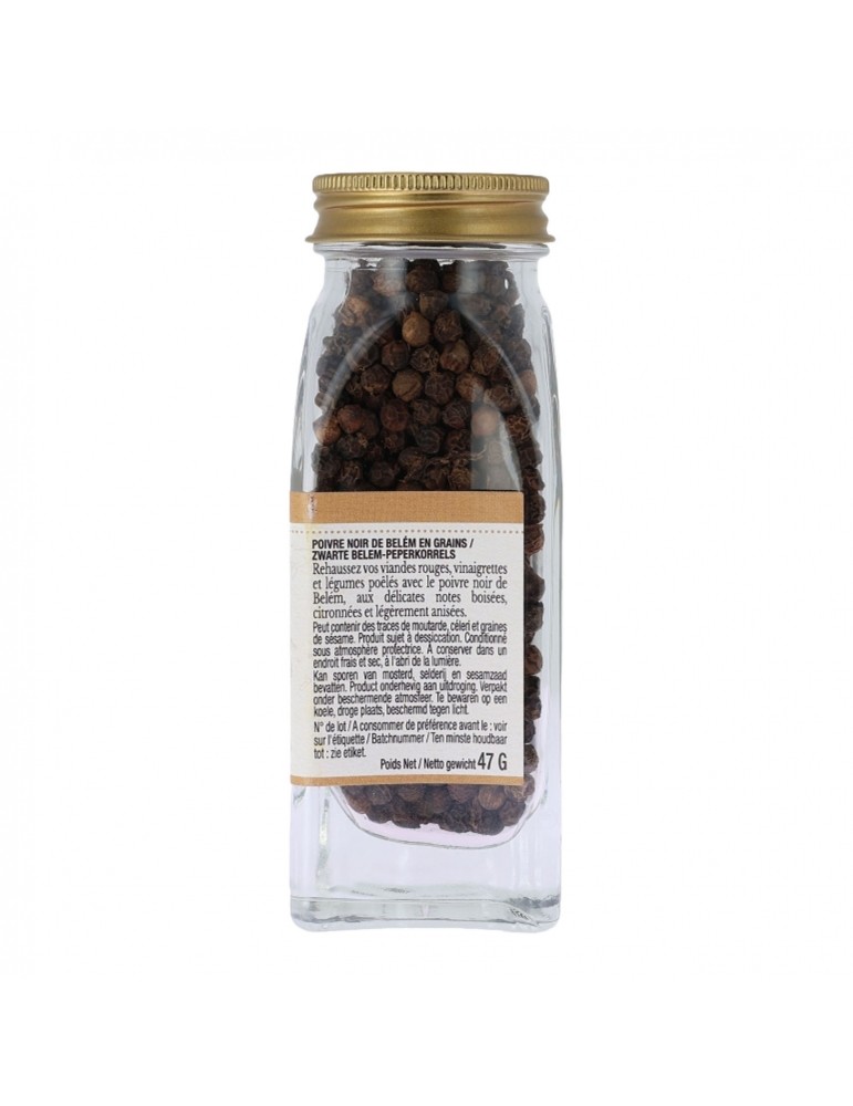 Originaire du Brésil, le poivre noir de Belem possède des notes boisées, un peu citronnées, avec une pointe d'anis. Il s'associera parfaitement avec vos viandes rouges, vos vinaigrettes et poêlées de légumes.