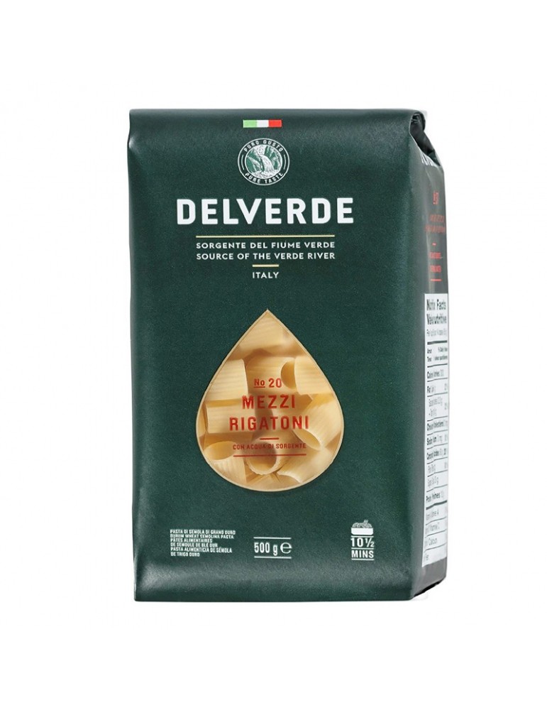 Les Mezzi Rigatoni sont une version plus courte des Rigatoni classiques, elles sont typiques de la tradition romaine et se distinguent de par leur surface striée et pour le diamètre et l'épaisseur importants. Les Mezzi Rigatoni sont succulents agrémentés de sauces de viande ou de légumes à condition d'être suffisamment épaisses et de pouvoir pénétrer à l'intérieur et de se glisser dans les rayures. Les recettes à base de poisson sont sans égal. Cuisson Al dente : 10 min. Produit kasher et vegan