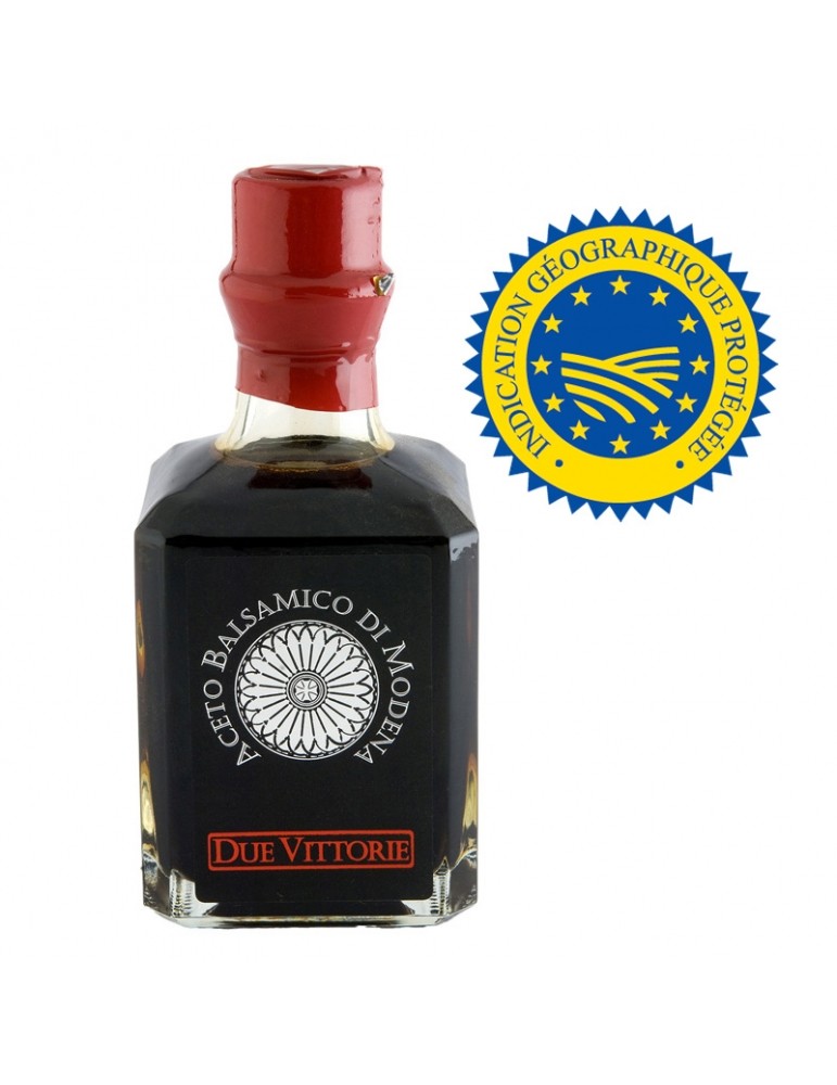 L'exploitation Due Vittorie est située dans la province de Modène. Garantissant grâce à sa recette jalousement conservée, à l'authenticité et la qualité des matières premières, un vinaigre avec un parfait équilibre entre l'aigre et le doux. Son vinaigre balsamique Argento IGP Modène est un vinaigre d'exception élevé en fûts de chêne.